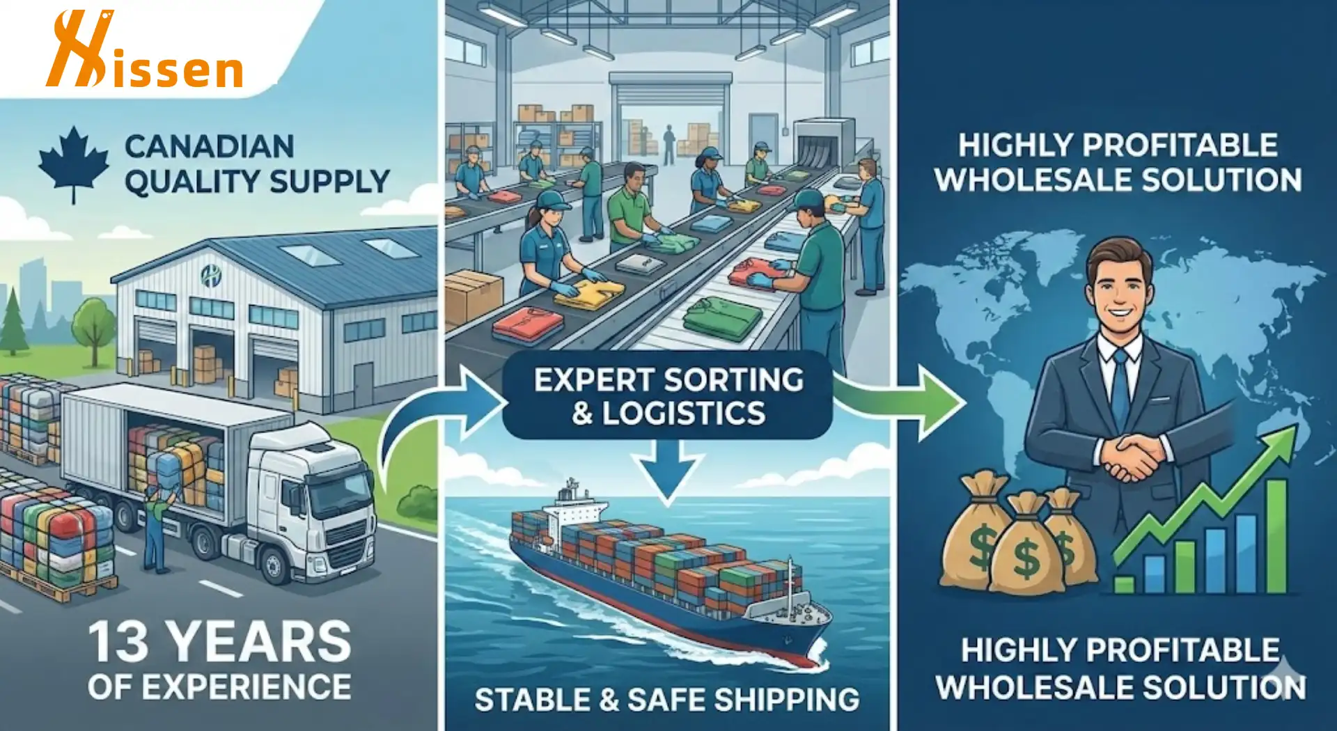 For importers in Tunisia, the UAE, Nicaragua, Ghana and many other emerging markets, finding reliable used clothes Canada suppliers has become essential to secure stable quality, good margins and a sustainable supply chain.